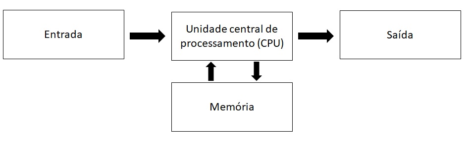 A arquitetura de um computador define como os componentes estão interconectados e como eles colaboram para executar tarefas. Os computadores, como os conhecemos hoje, são estruturados em cima da lógica proposta inicialmente por John Von Neumann, matemático húngaro que viveu durante a primeira metade do século XX e que contribuiu imensamente em várias áreas das ciências. Embora tenhamos hoje uma complexidade maior nos elementos que compõe a arquitetura de um computador, a estrutura básica por trás dos computadores mais modernos continua sendo aquela proposta por Von Neumann. Essa arquitetura pode ser representado pelo diagrama abaixo: